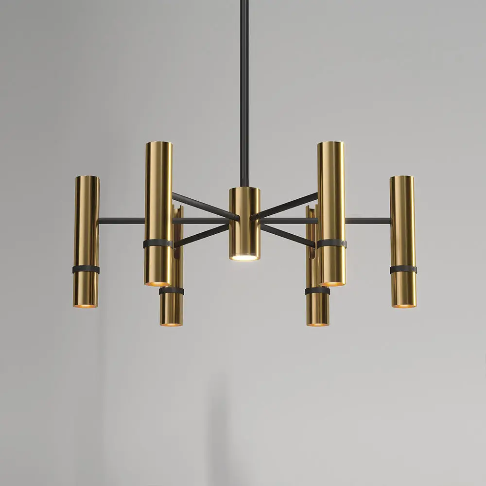 Contemporary designer chandelier with 7 lamps.3 configurations of lamps - rotation 0°, 55°, 90°.Models available in gold color.