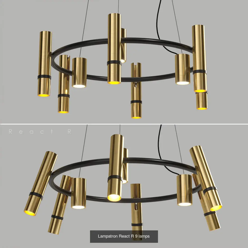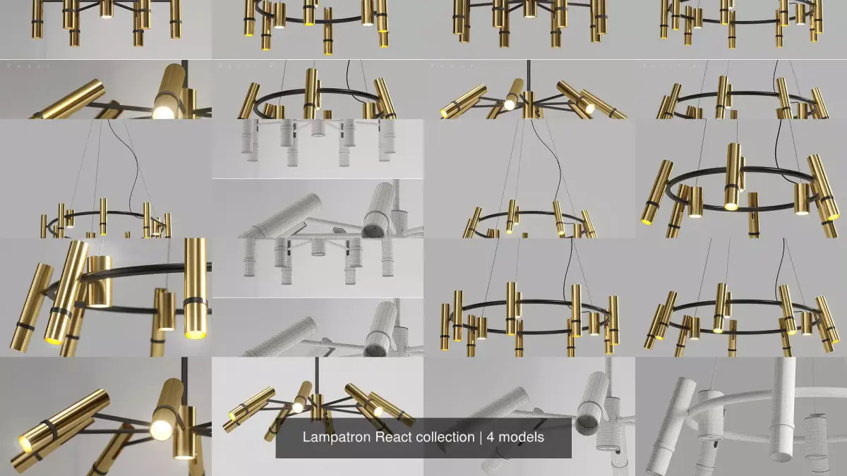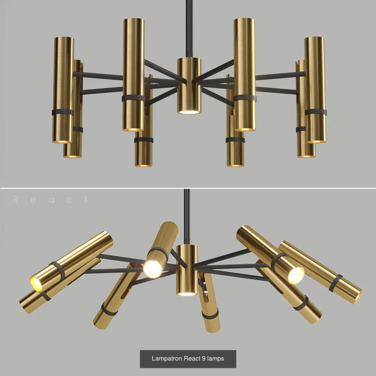 Lampatron React collection includes 4 chandeliers in 3 configurations with different rotation of lamps.
