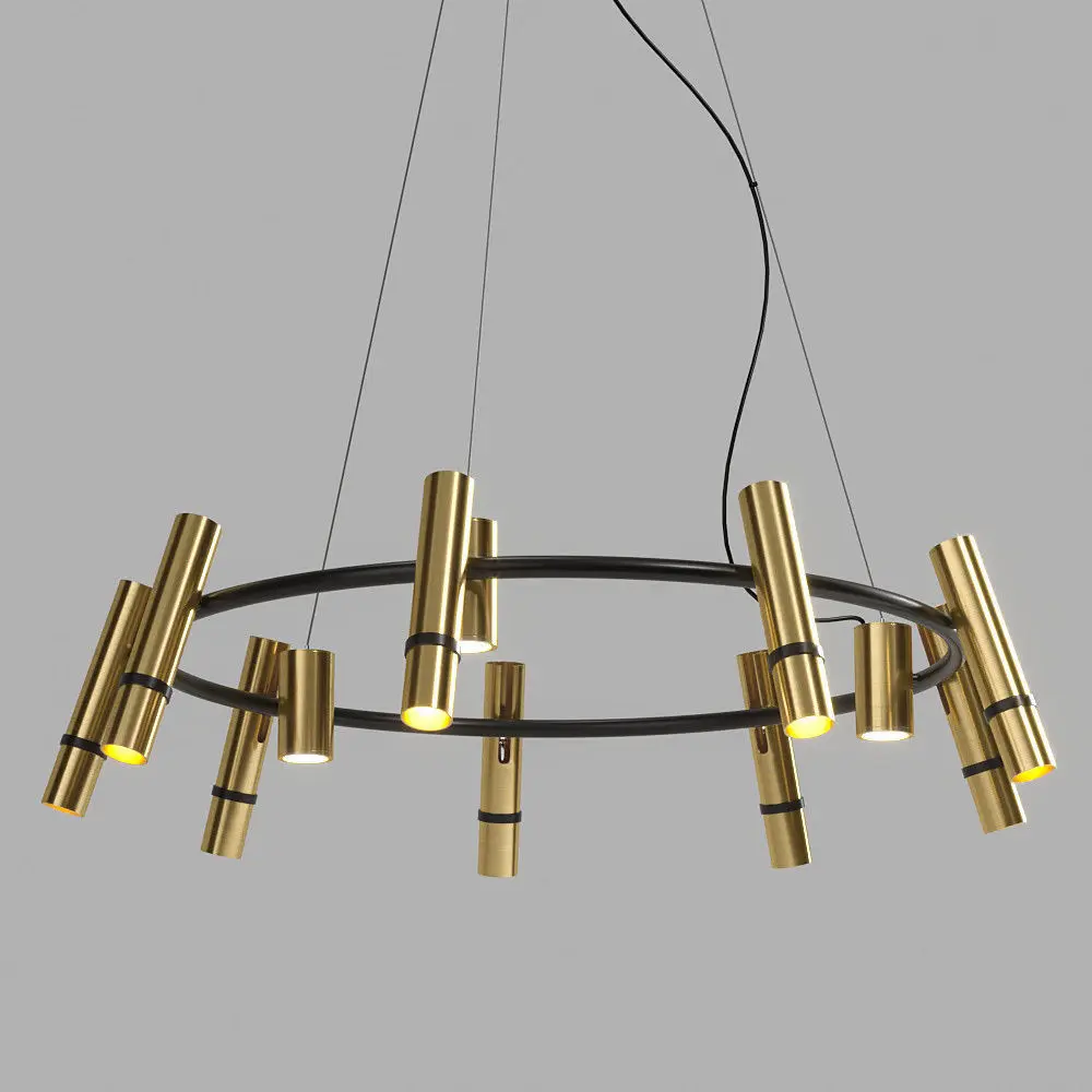 Contemporary designer chandelier from React collection with 12 lamps.2 configurations of lamps - rotation 0°, 20°.Models available in gold color.