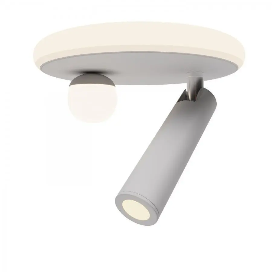 The model has a swivel luminaire binding for easy rotation and tilt.Ceiling lamp with a ball-shaped and rotating cylindrical shade and an external LED glowDiameter 200 mm