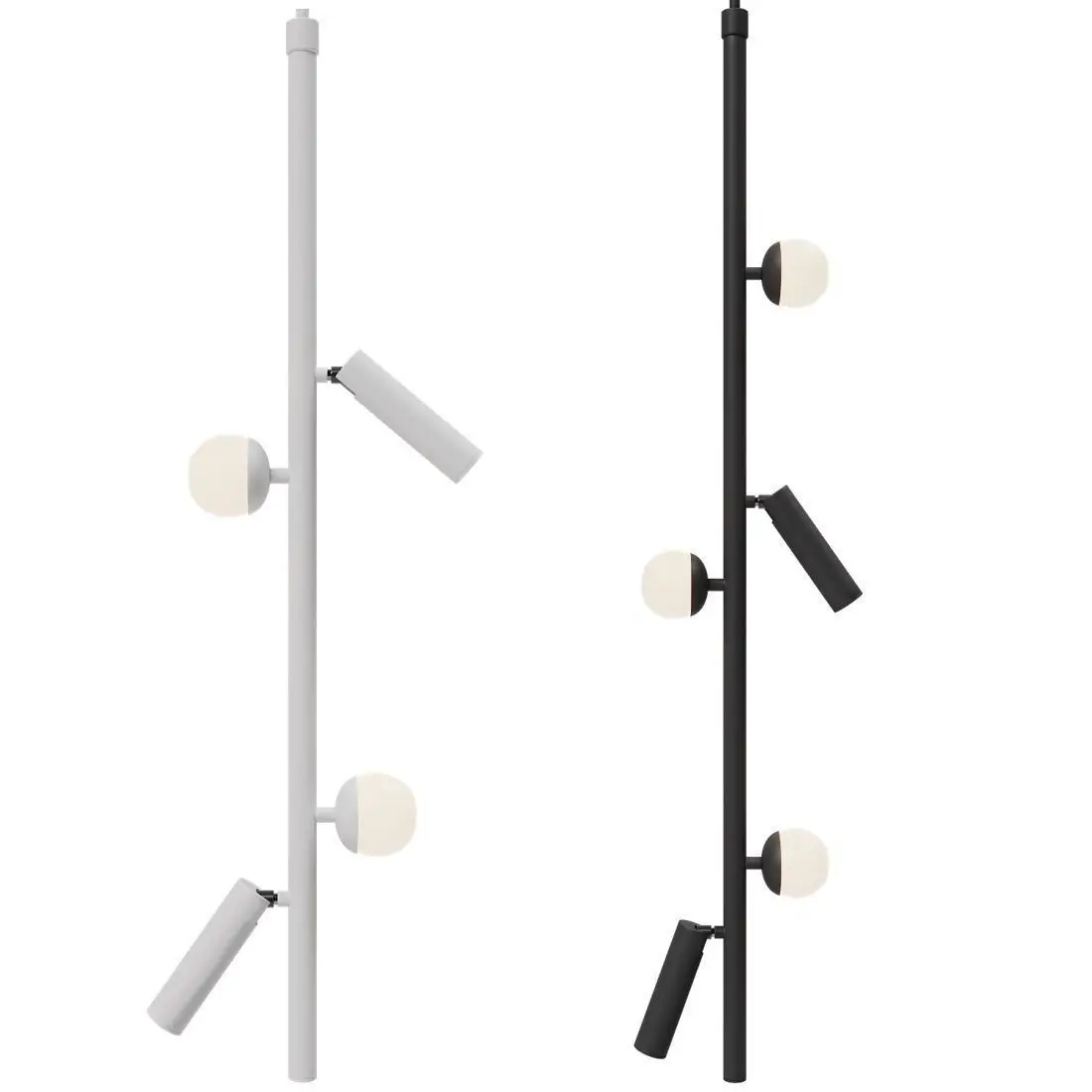 The model has a swivel luminaire binding for easy rotation and tilt.A series of pendant LED luminaires with ball and rotating cylindrical shades