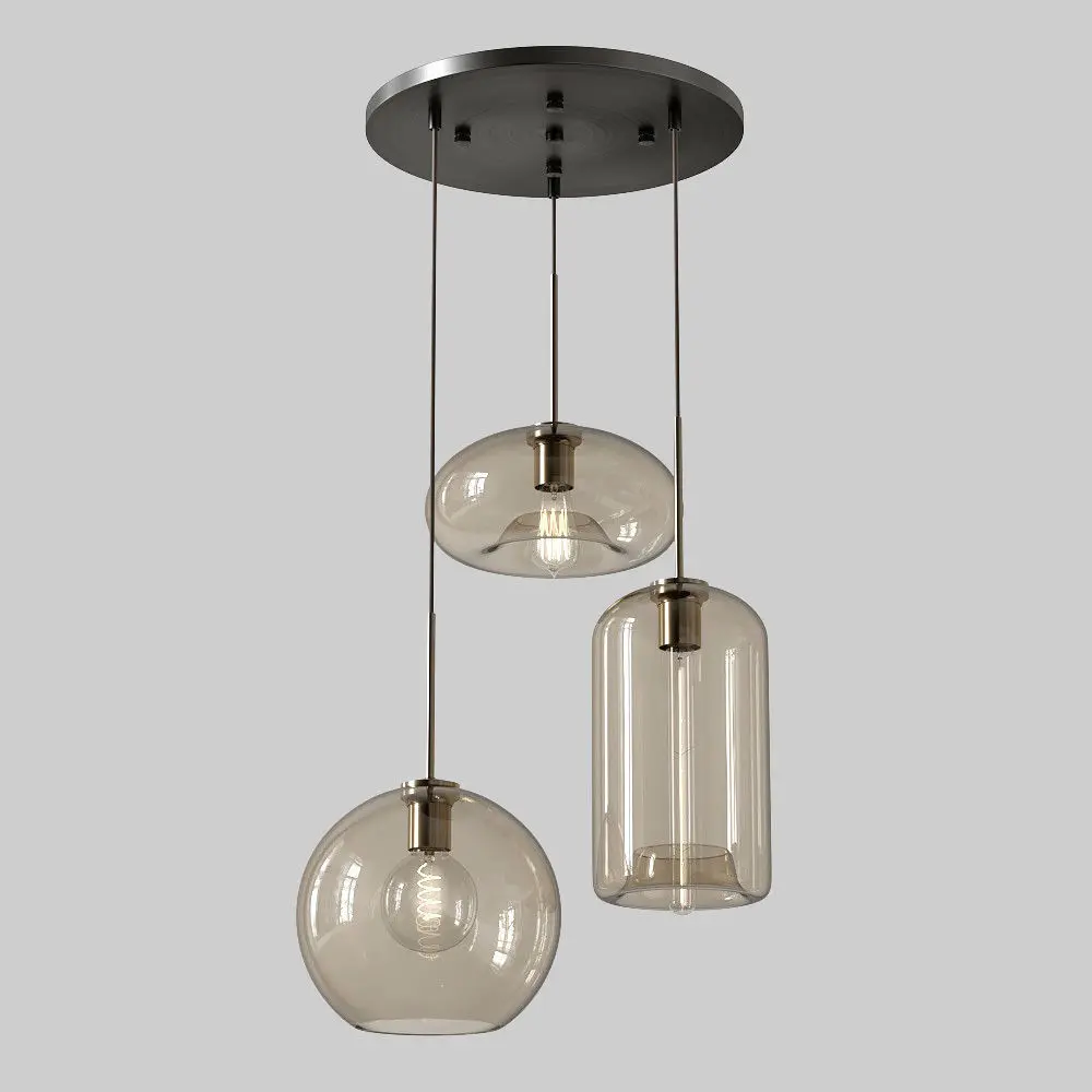 Make a statement with your lighting when you add this pendant light to your space. Contemporary designer 3-light pendant with spherical shades from Vilmo collection.Recommend an Edison bulb to add some retro vibes.Metal parts finish - black/gold, glass shade color - amber.