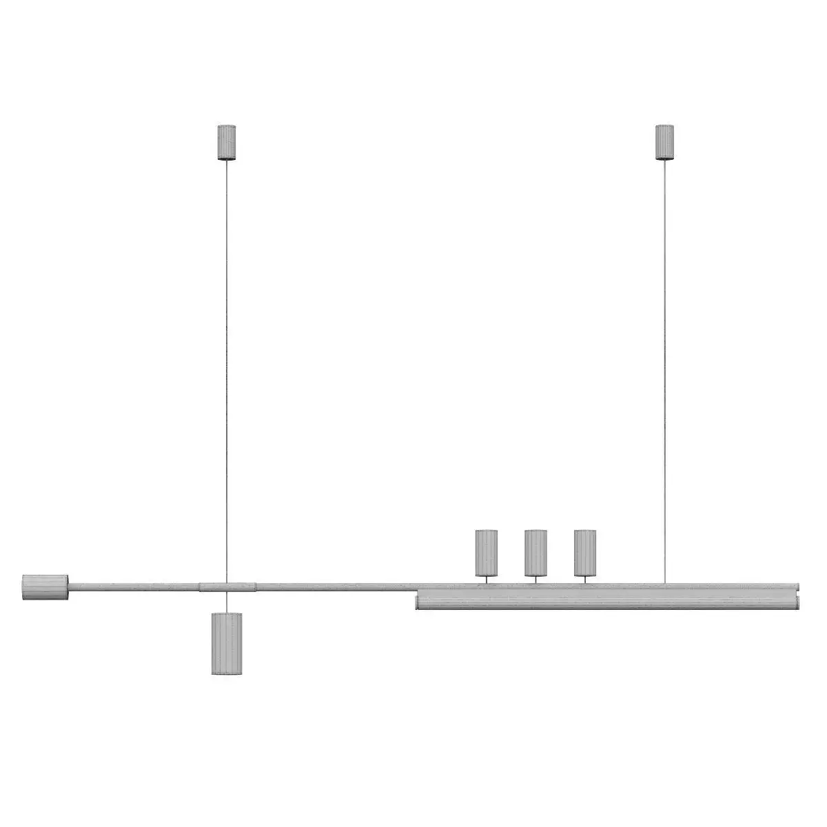 This is a premium 3D model of the Lampatron ZODIAC B chandelier, a unique and stylish lighting fixture. The model accurately captures the lamp's striking design, which features a prominent horizontal bar from which a series of gracefully curved wooden or metal elements are suspended. The design is both playful and sculptural, creating a beautiful contrast between the rigid lines of the frame and the soft, organic curves of the light elements.