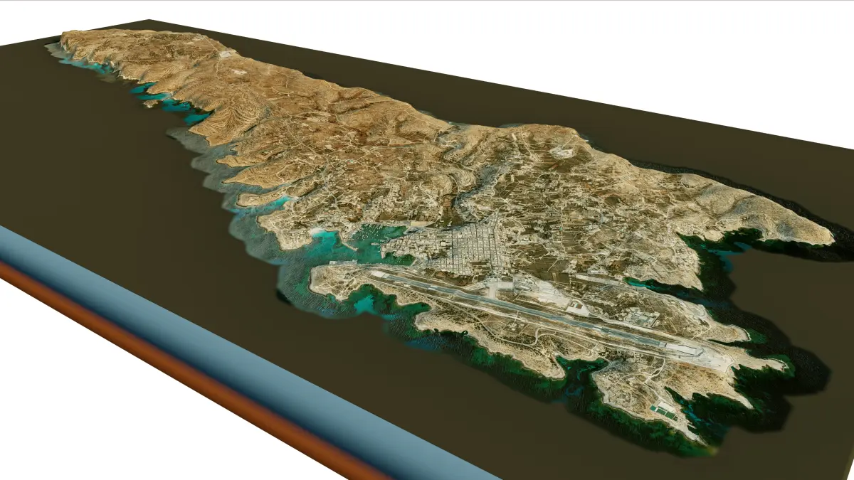 Lampedusa island 3d model terrain. 3d model island of Lampedusa with its landscape of mountains, beaches and forests.