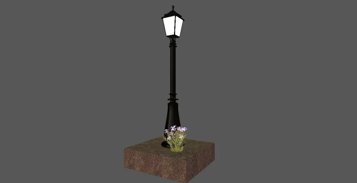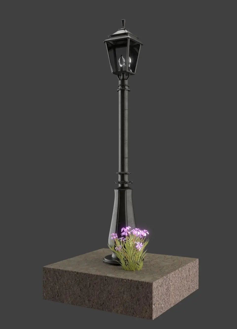 This is a 3D representation of a lamppost/stree light. Post-processing in Cycles and a few additional elements (pavement, grass, and flowers) have been added to complement the scene.The lamppost has PBR materials. The texture has been painted by the artist. The normal and specualiry maps have been generated based on the painted image texture. One or more textures (pavement texture) bundled with this project have been created with images from Textures.com. These images may not be redistributed by default. Please visit www.textures.com for more information.No plugins have been used to render the scene. The lamppost will be rendered like on thumbnails with appropriate lighting setup.The textures are not baked and can easily be changed. All materials and shaders in the scene are named properly to make navigation smooth and practical.The model is at the centre of the scene and can be rescaled.The model has clean topology. All converted formats have been tested before upload.The 3D model can be used as a digital asset and also be printed using a 3D printer (STL file).The 3D model is for free. Thank you!