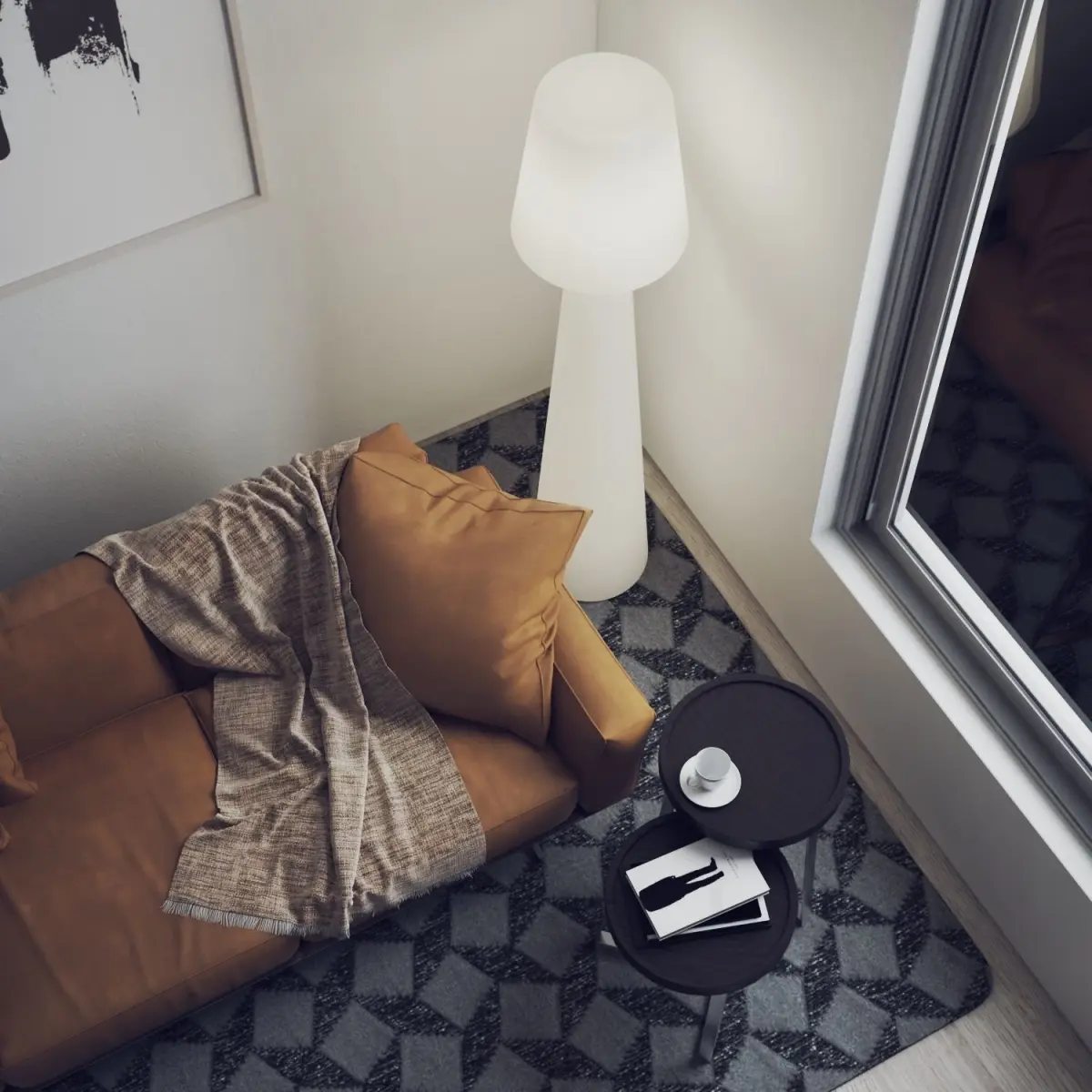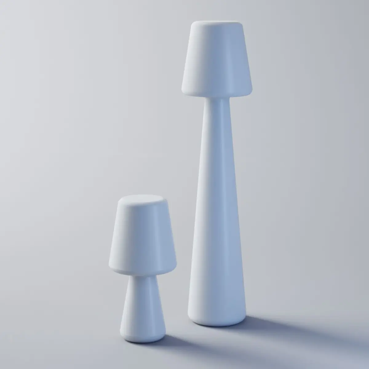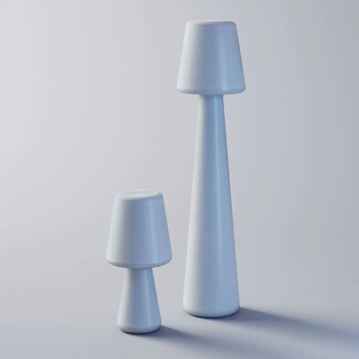 Minimalistic accessories that add light and style to a space. The model is made to two different scales where one fits as a floor lamp and the other as a table lamp.