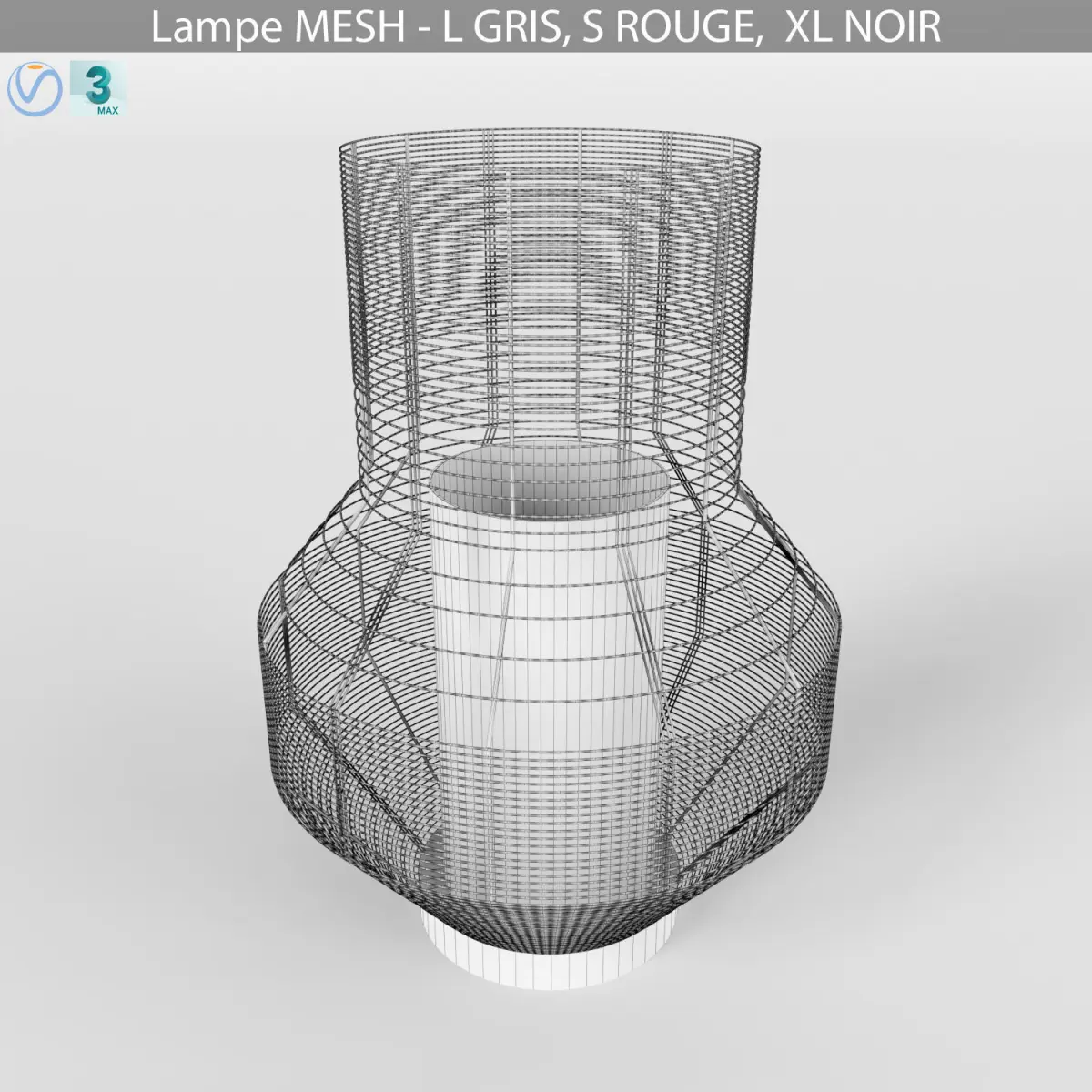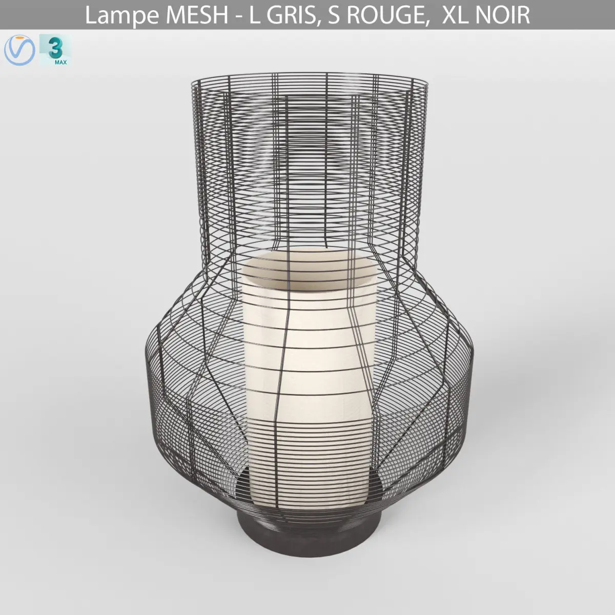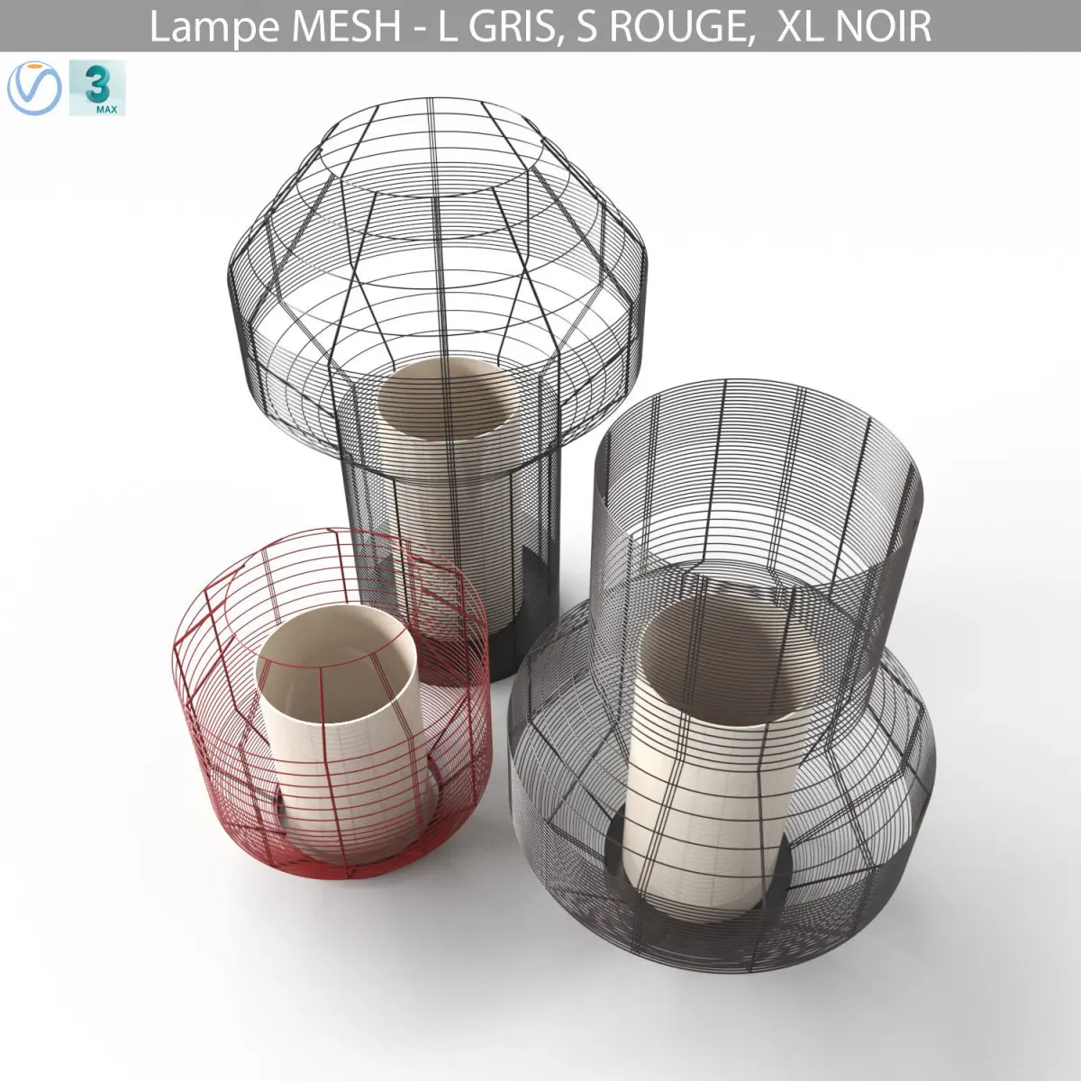 Models of lamps L GRIS, S ROUGE and XL NOIR from the mesh collection.