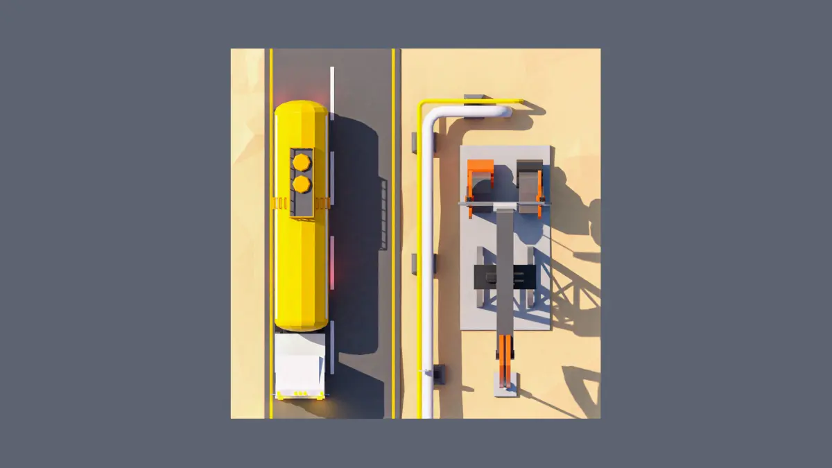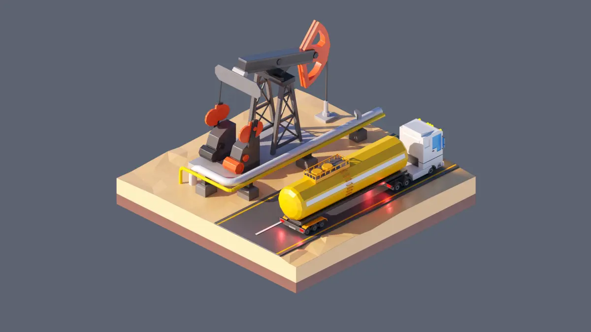 - landscape, highway, oil production, tank truck, oil pipeline, oil production station.