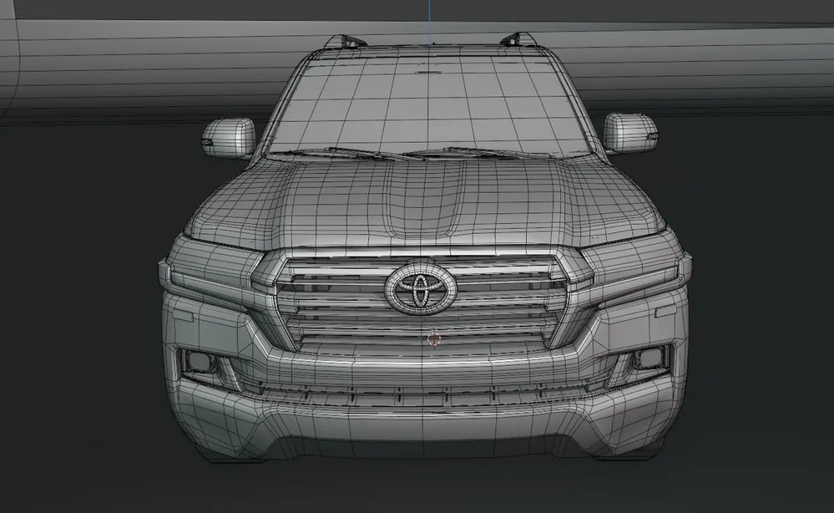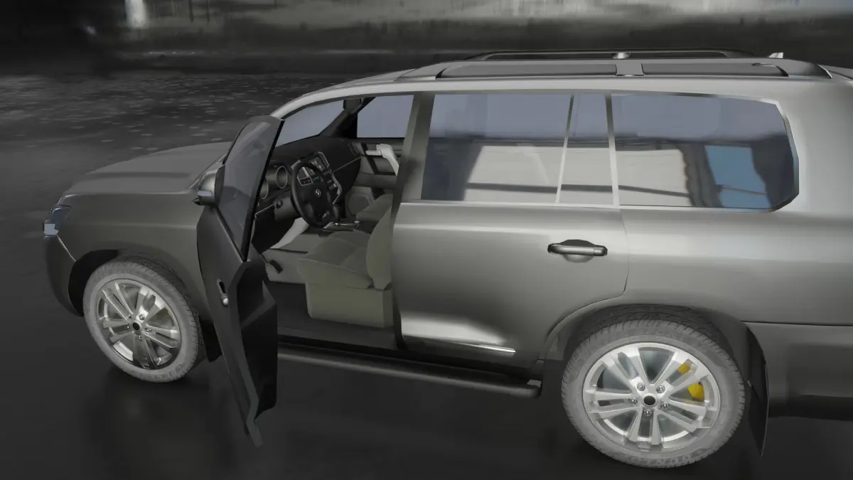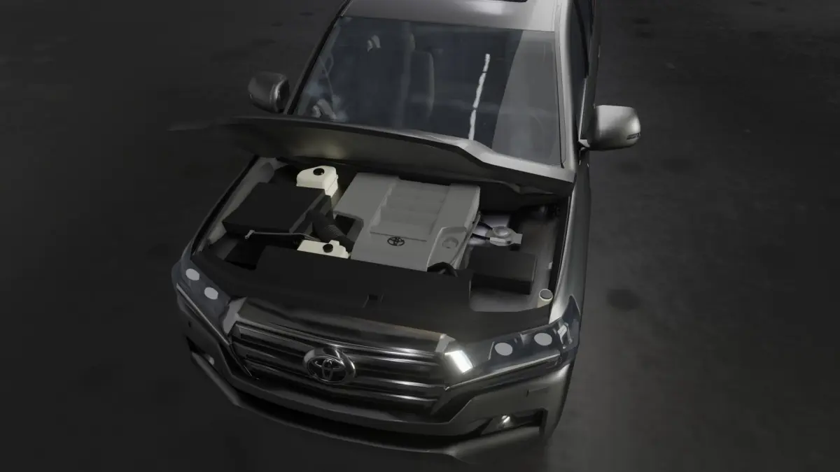 A Game Ready Toyota Land Cruiser 3D game ready model with a detailed interior and engine bay