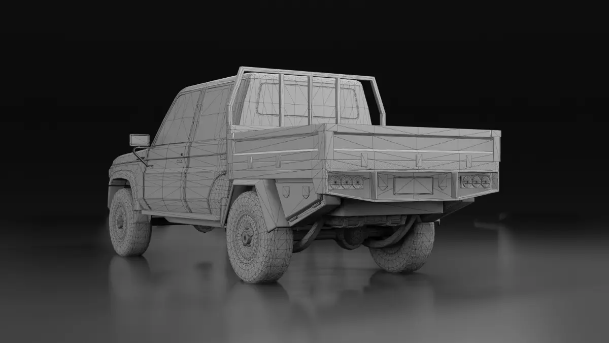 3D model of the Land Cruiser 79 Series Model 2018.High quality exterior model with interiors modeled as well from seats to the whole dashboard.Game ready low poly car model with around 47,500 poly.Includes 4k textures.