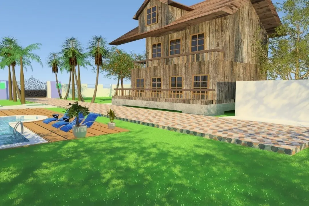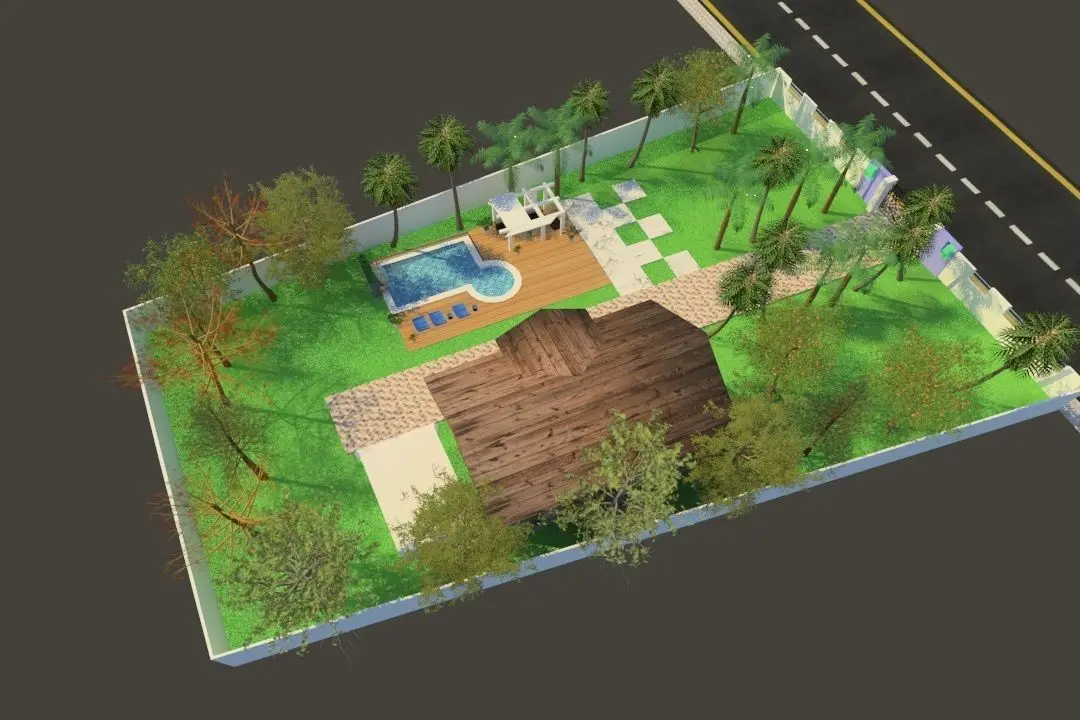 My project is a 133 foot X 84 foot land layout in 3D with exterior environment and 3D trees. It contains mainly a wood house model and a properly designed swiming pool with decoration, seating area. Here you will find a fountain combined with swimming poll. The fountain is well decorated with tiles and stone. It also contain a swing chair. I use 3ds max 2018 for modelling and vray 3 for rendering. There I also design a garage for your car. I also provide a very classinc cast iron gate with beautiful design. The boundary wall is also designed creatively.