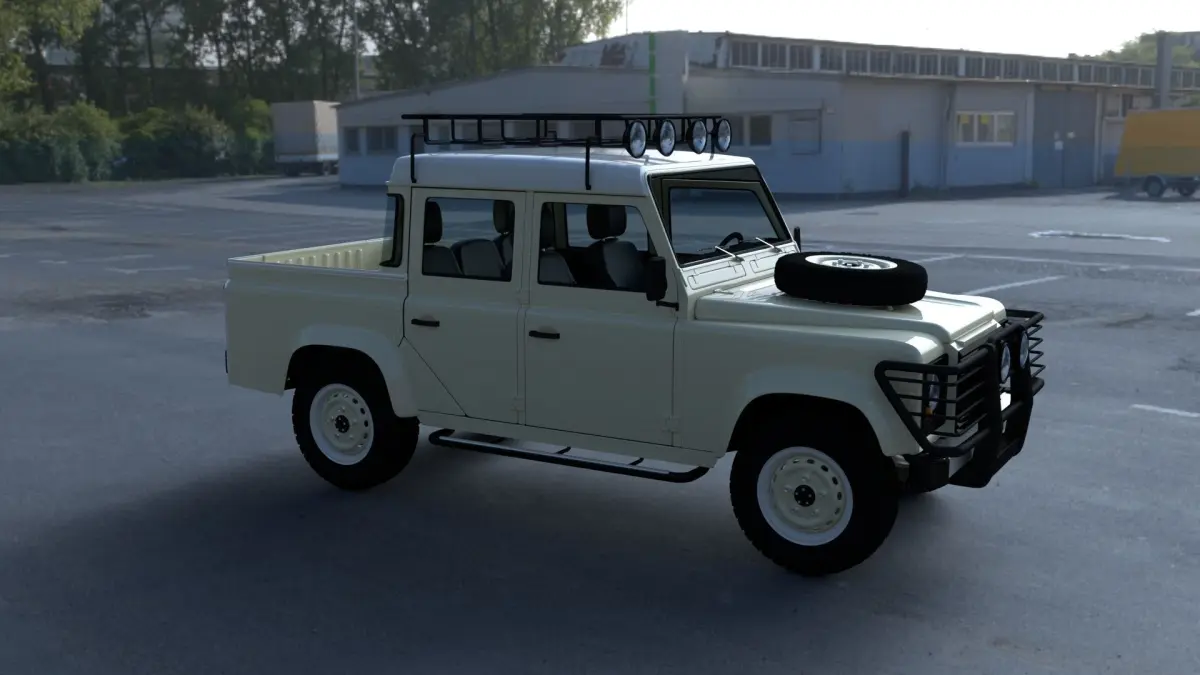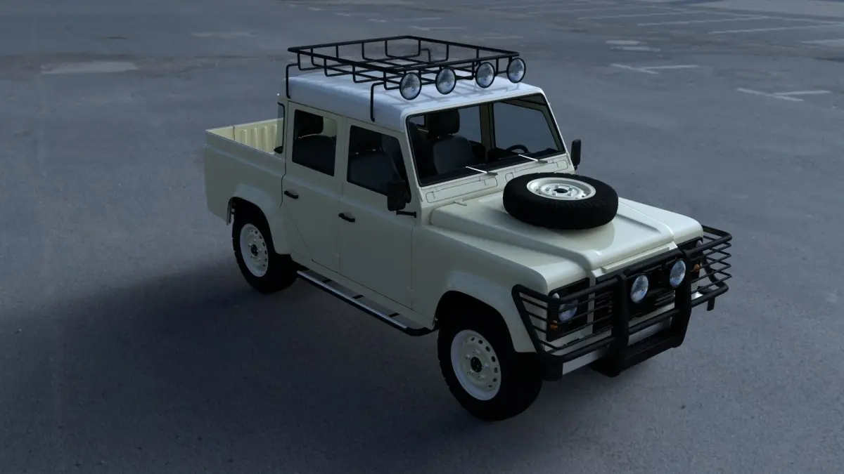 A very accurate model of a Land Rover Defender 110 Double Cab Pick Up with a HIGHLY DETAILED INTERIOR MODELED.