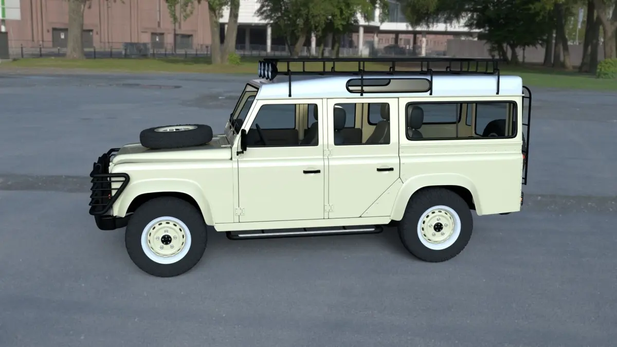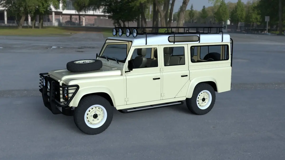 A very accurate model of a Land Rover Defender 110 Station Wagon with a HIGHLY DETAILED INTERIOR MODELED.