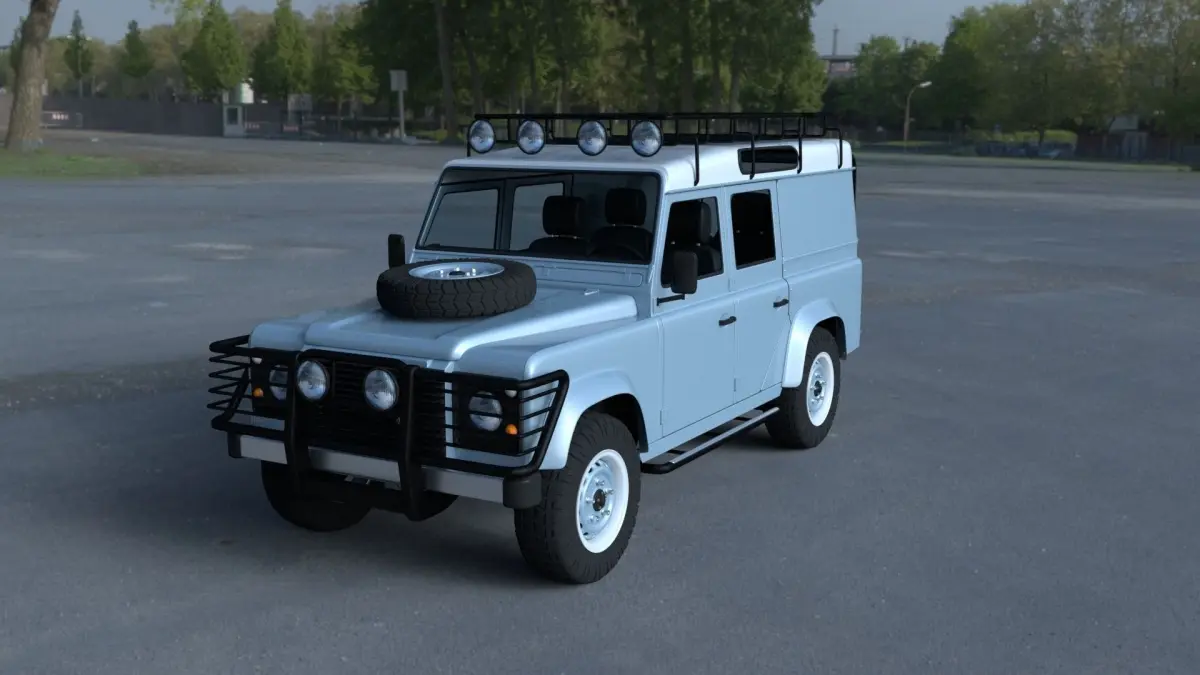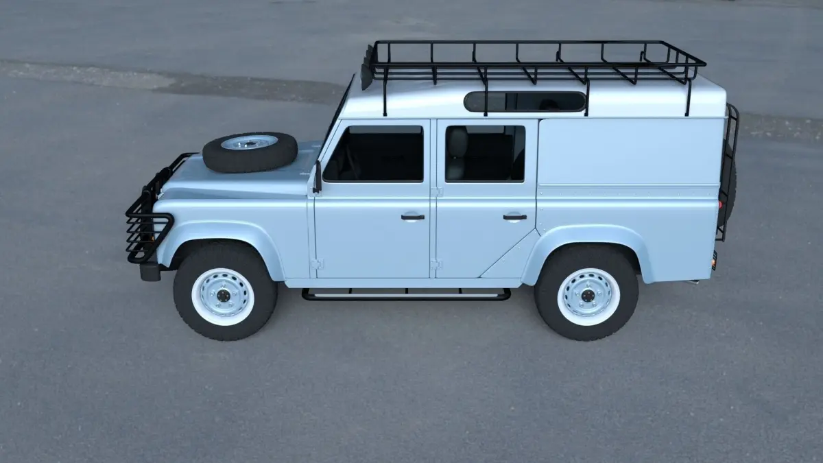 A very accurate model of a Land Rover Defender 110 Utility Station Wagon with a HIGHLY DETAILED INTERIOR AND CHASSIS, WITH ENGINE, GEARBOX, EXHAUST, SUSPENSION AND BRAKES MODELED.
