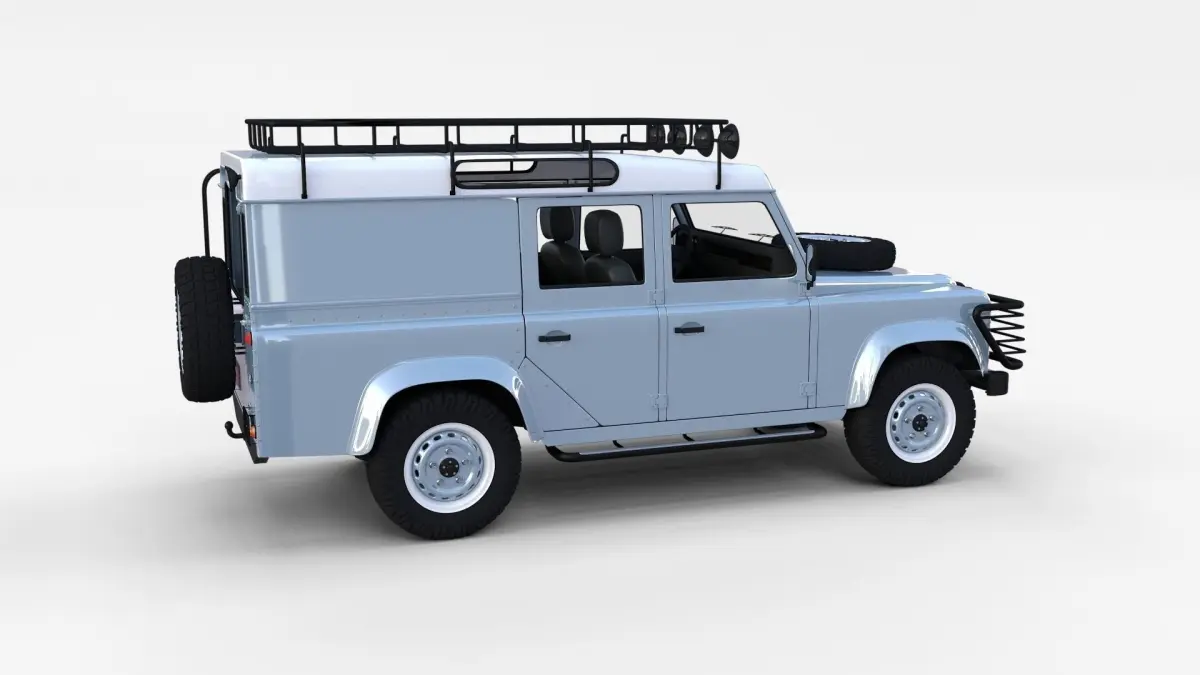 A very accurate model of a Land Rover Defender 110 Utility Station Wagon with a HIGHLY DETAILED INTERIOR MODELED.