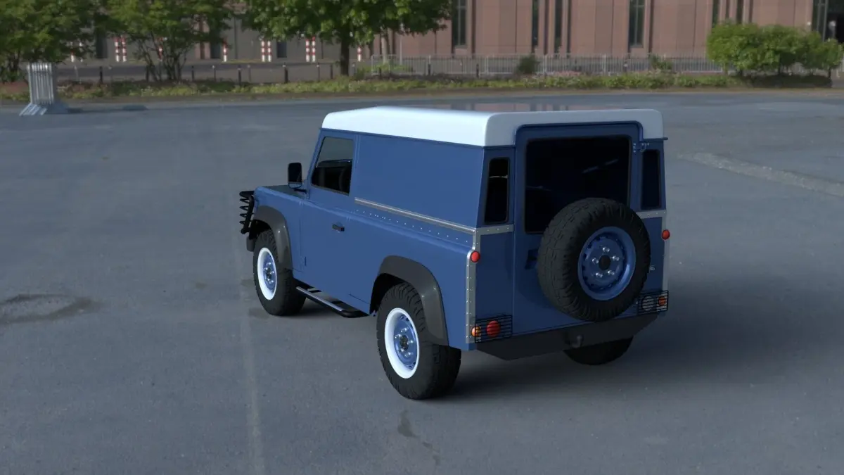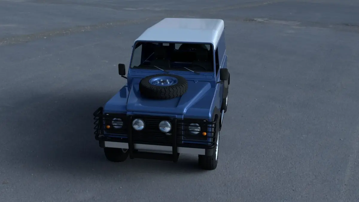 A very accurate model of a Land Rover Defender 90 Hard Top with a HIGHLY DETAILED INTERIOR MODELED.
