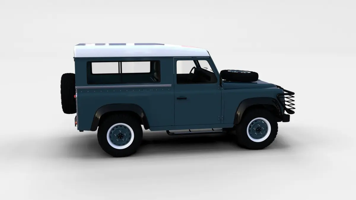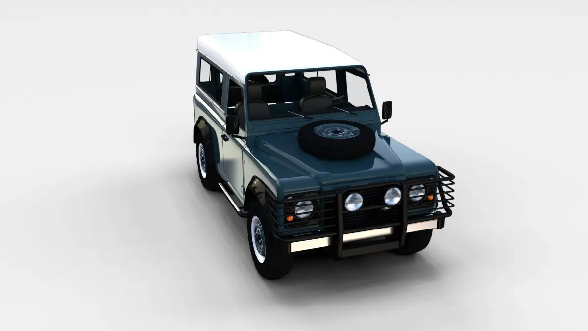 A very accurate model of a Land Rover Defender 90 Station Wagon with a HIGHLY DETAILED INTERIOR MODELED.