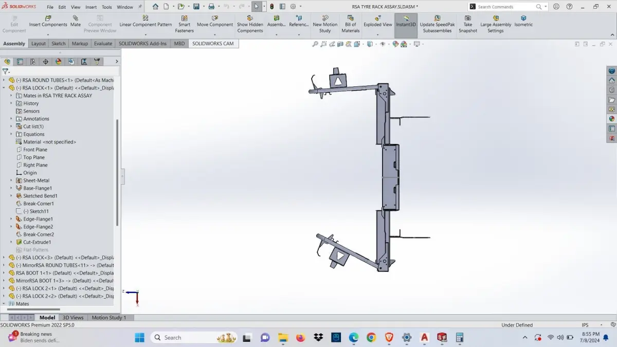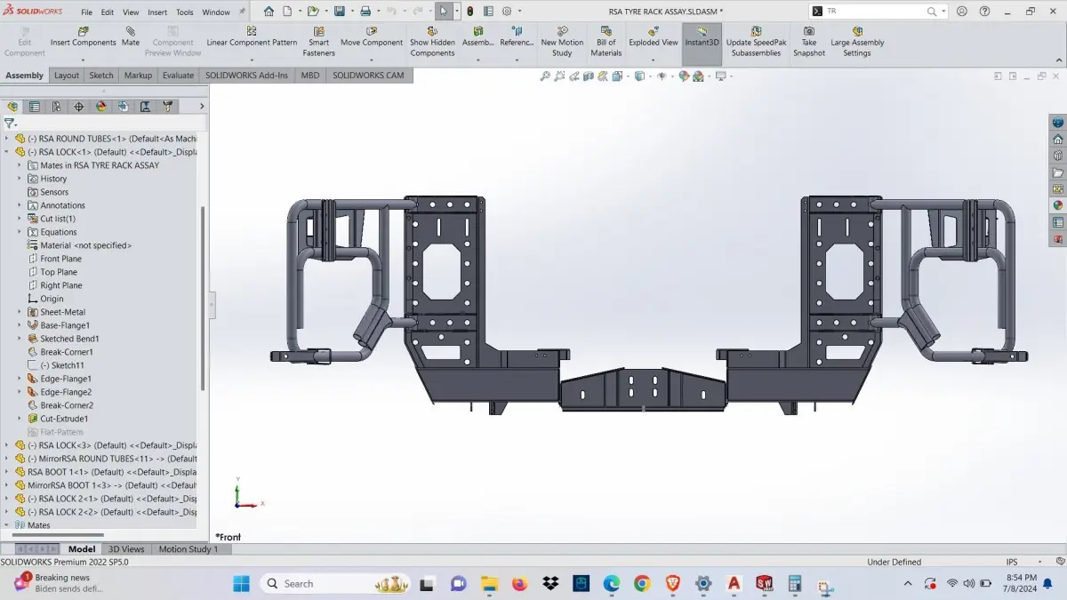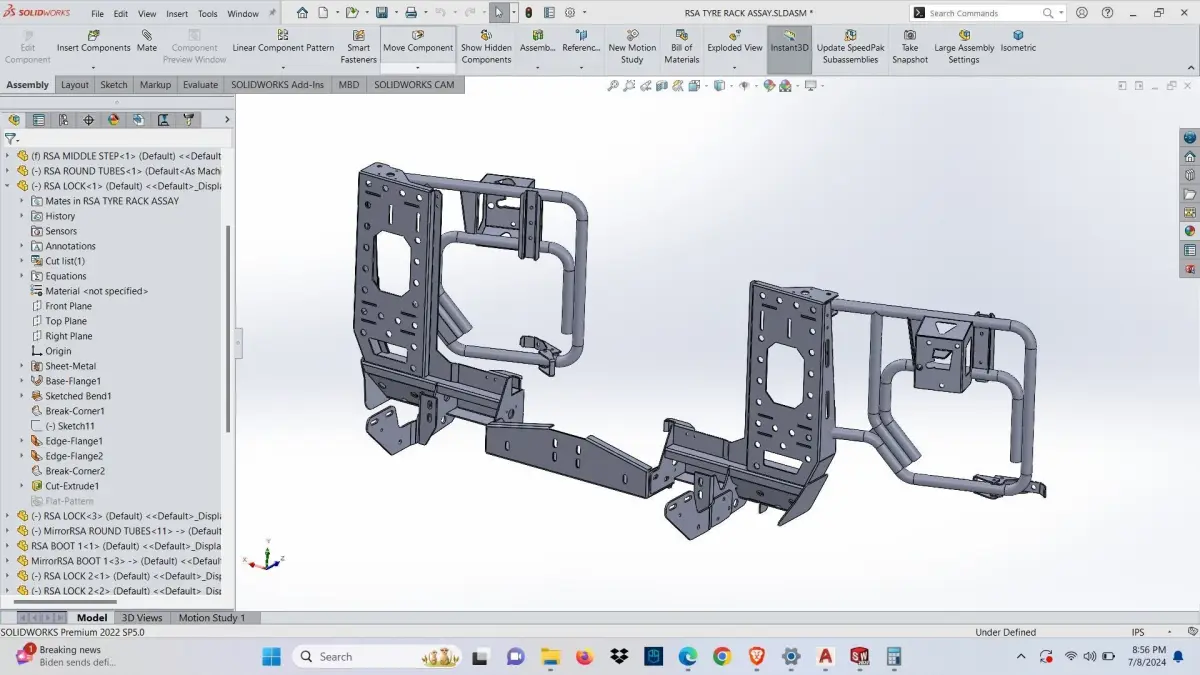 Landcruiser 78 79 rear tire tyre rack bumper. constructed in solidworks sheet metal. Ready to be flattened and cnc laser and plasma cut. scale 1:1