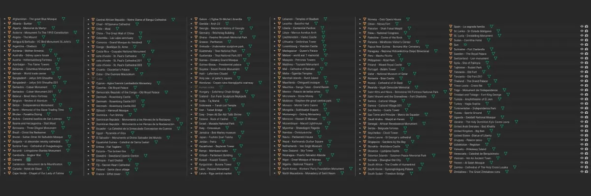 This project aims to create every single most famous landmark of every country in the world. This one pack contains countries ranging from A to Z (A total of 195 Countries).