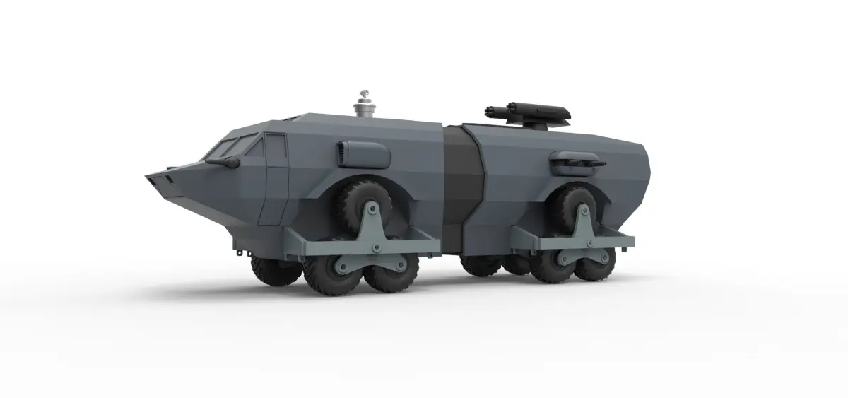 Model consists from parts: front body part, middle body part, rear body part, top part, side parts, wheels, wheel pins, spiders, spider pinsside frames, front guns, top gun, radiator 1, radiator 2, right intake, left intake, side guns, pin.