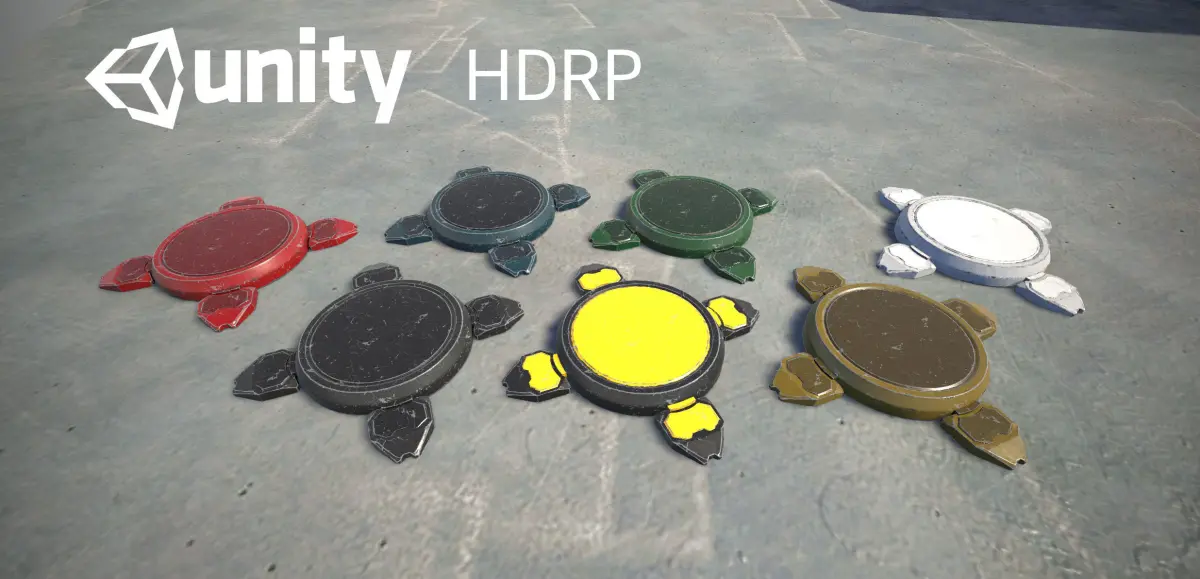 == Textures ==PBR - 16 bit .png (4096x4096 pix) : Albedo, Metallic, Roughness, Normal - 7 COLOR VARIANTSHDRP Unity - Mask Map availableEffective overlap of landmines legs in UV's
