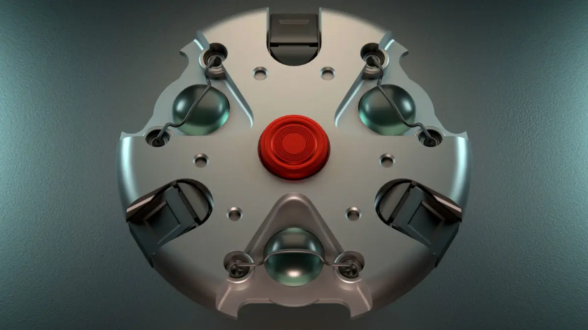This mine has 3 capsules filled with toxin - when the button is being pushed the toxin gets released.
