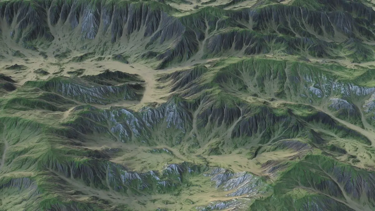 Detailed 3d model of the 4x4 km Landscape with 3 detailed 16x16k maps: