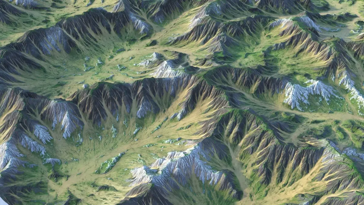 Detailed 3d model of the 4x4 km Landscape with 3 detailed 16x16k maps: