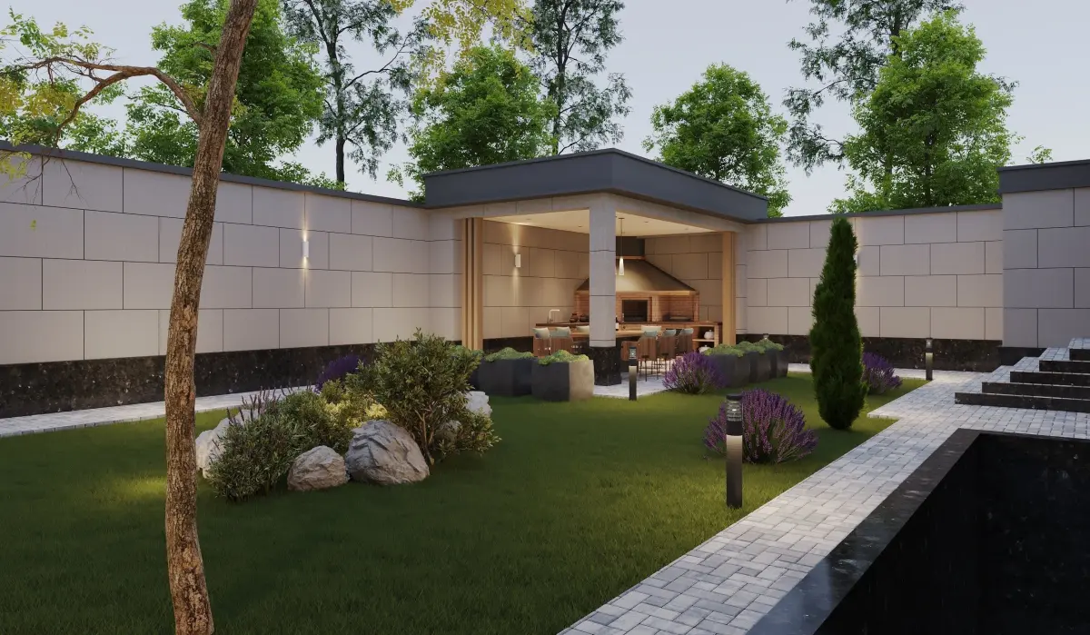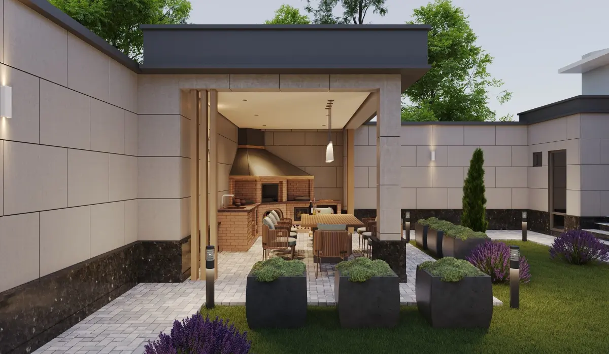 landscape courtyard design and kitchen design programm 3d max 2020 corona render 9