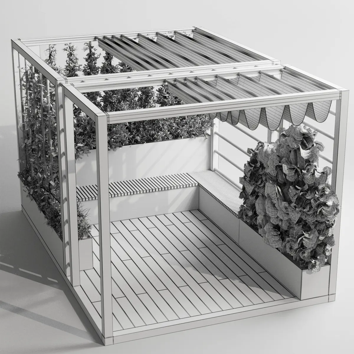 Landscape Furniture with Pergola and Roof garden 09 3D model