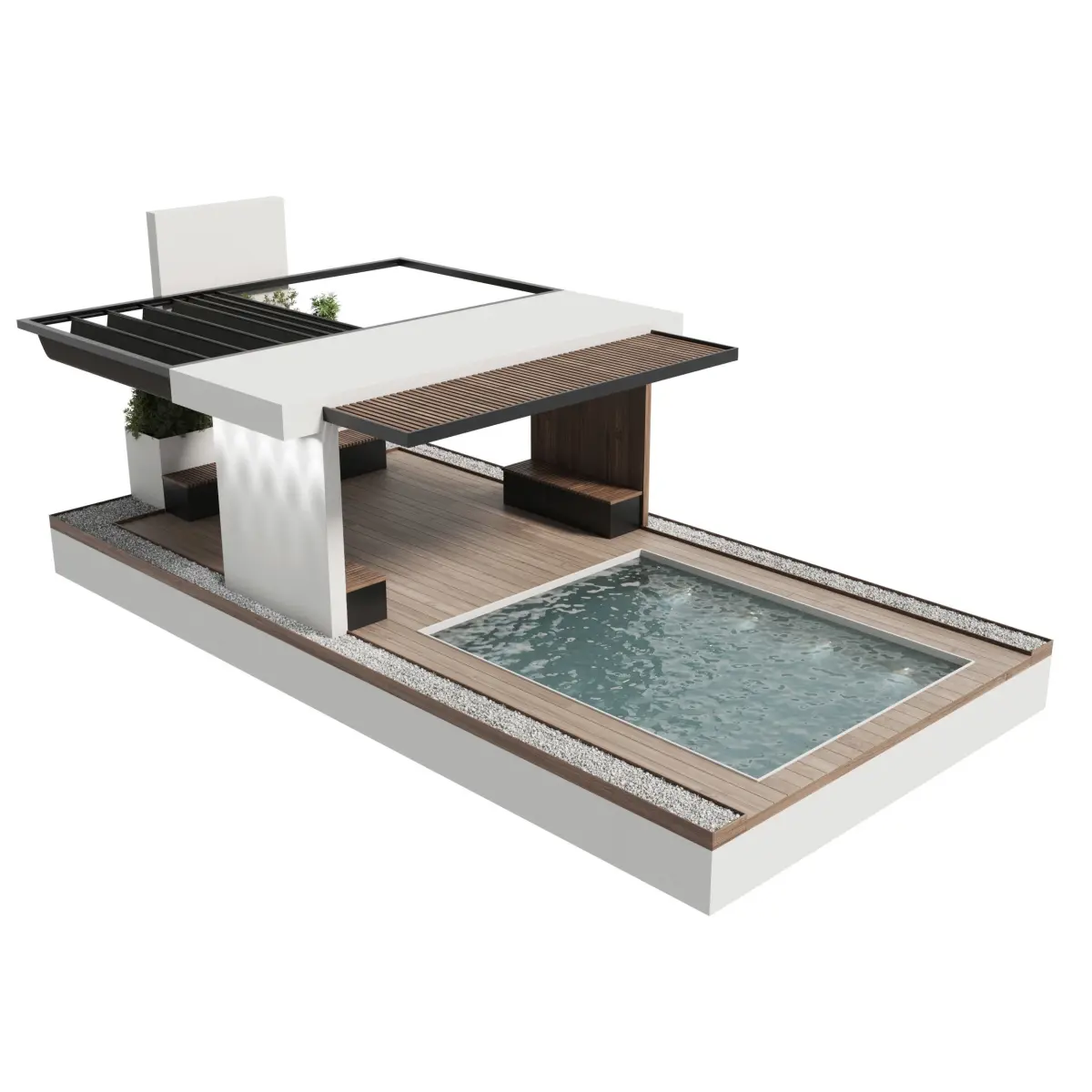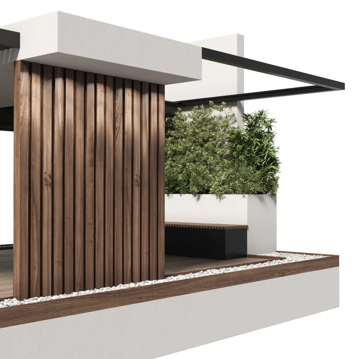 garden, branch, leaves, bench, backyard, stones, gravel, square, tree, concrete, module, street, furniture, outside, pot, outdoor, flowerpot, flower, balcony, pool, water