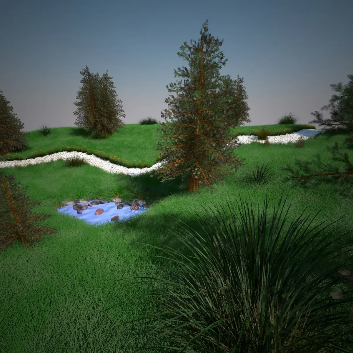 - Used Vray Materials for grass, leaves, soil, rocks