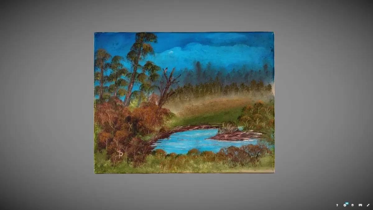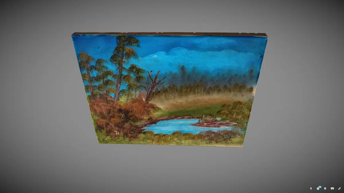 Photo-real, unlit, texturized model of a Landscape Painting. This object was generated using photogrammetry with a DSLR camera and images edited in Light Room, compiled in Reality Capture, and re-topologized in Insta-Mesh. The mesh is edited in Agisoft, and model retextured in Reality Capture.