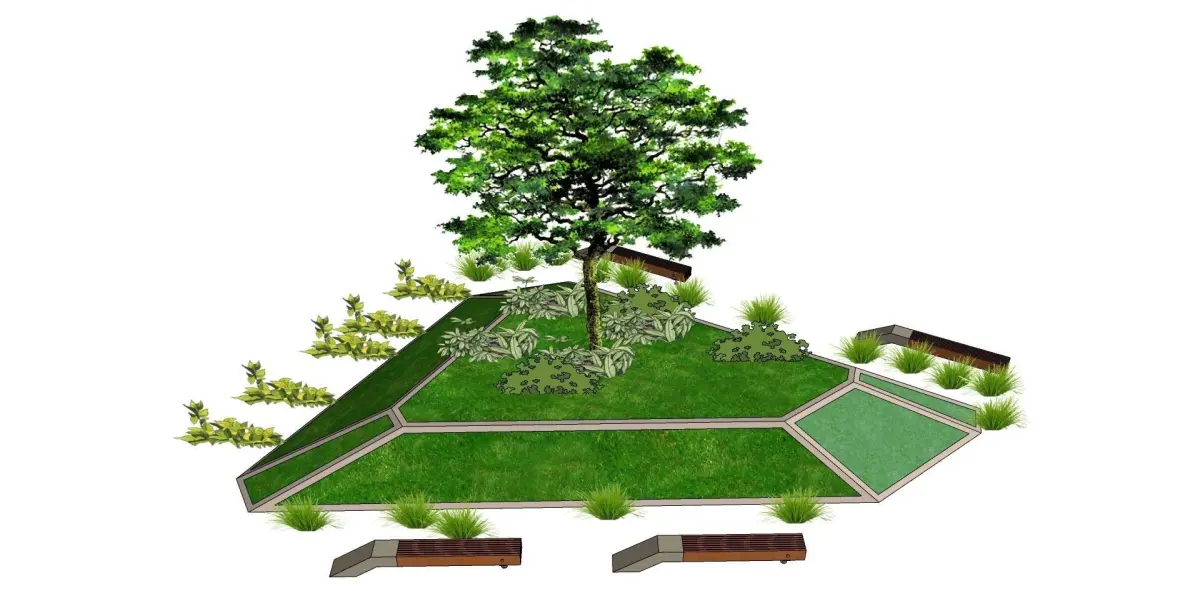 landscape planter with benches 3d model