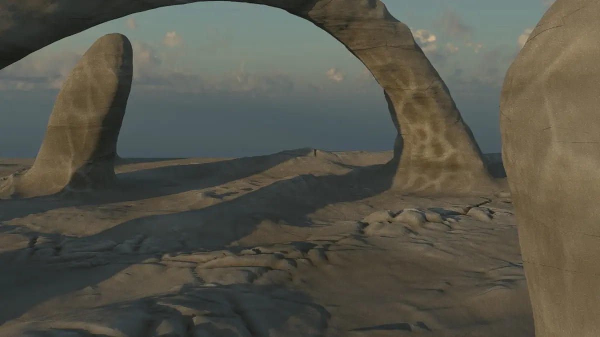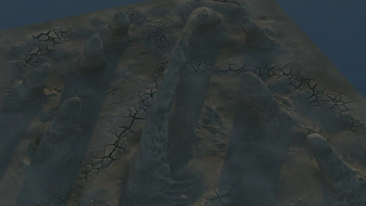 medium sized landscape (about 300m x 300m)FeaturesStalagmite - like formations rock arch formation