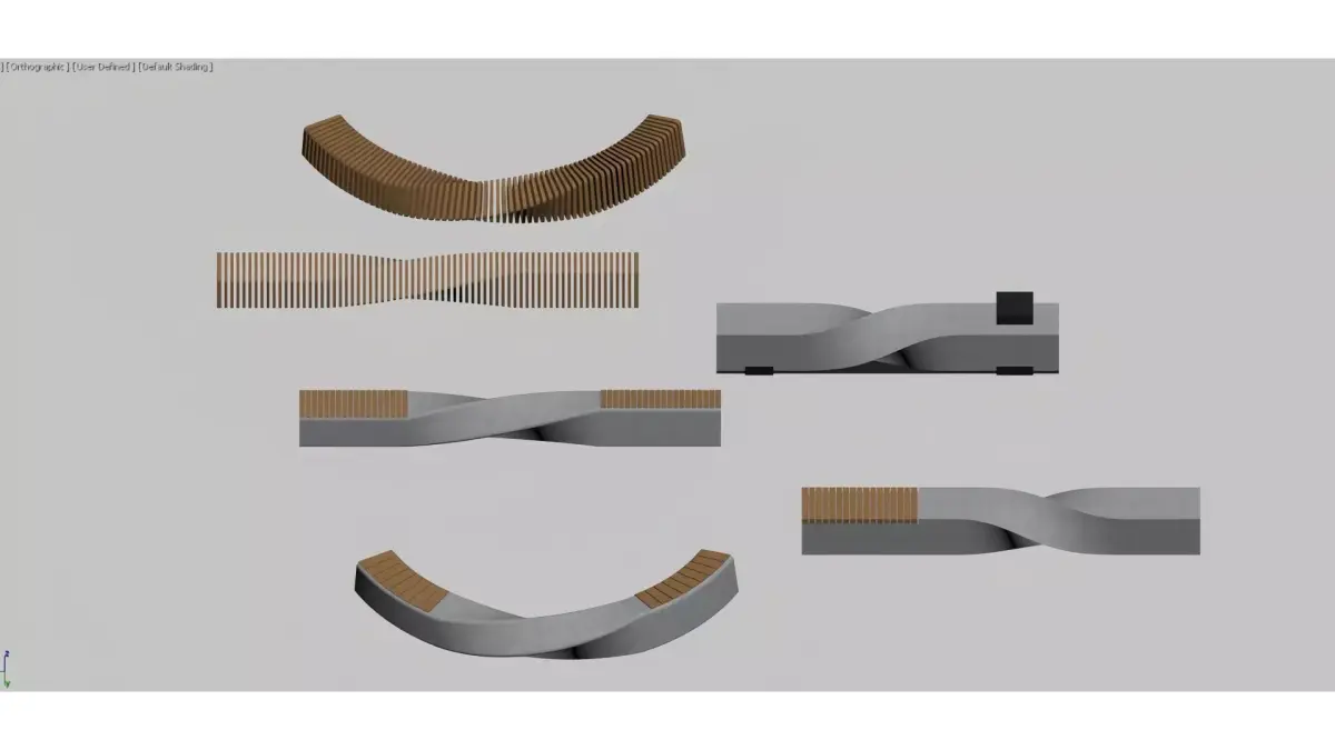 This is a set of modern and creative public seats, with smooth curves and twisted shapes as the core design language. Adopting a material combination of concrete bases and wooden seating surfaces, the seats strike a perfect balance between functionality and artistic appeal.Featuring a modular form, they can be flexibly assembled to fit different public spaces (such as parks and squares). They not only meet the needs of outdoor leisure but also serve as landscape installations to enhance the aesthetic atmosphere of the space.