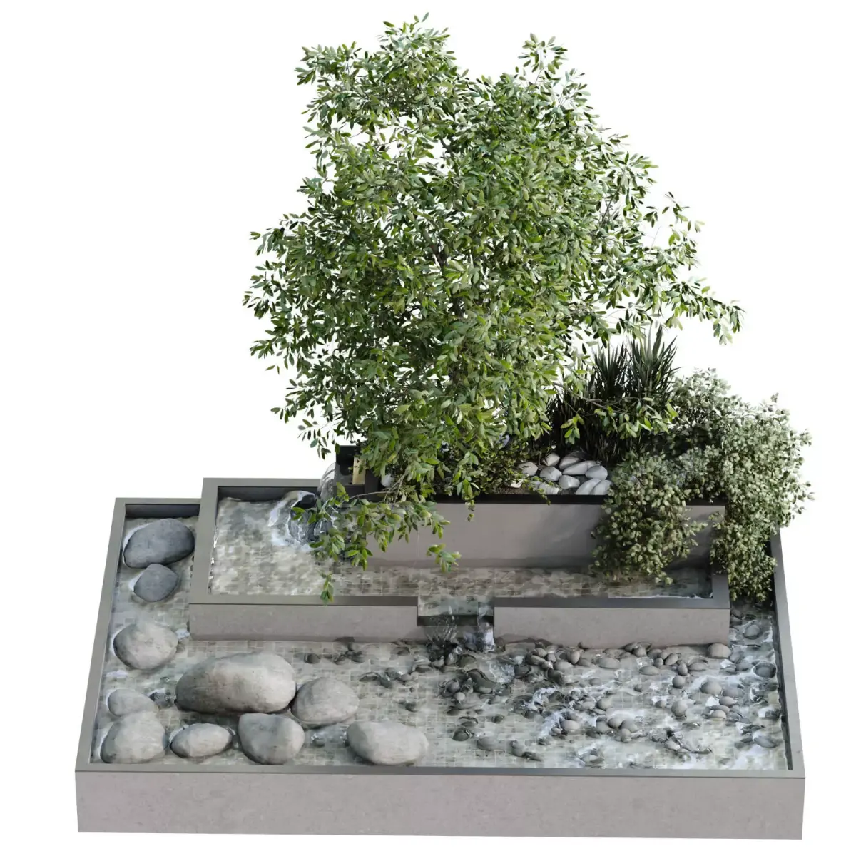Name: Landscape waterfall and plant set 650Type: modelMid: Format: 3Ds Max 2019Export: FBX, 3DSRender: VRay (6.x), Corona (11)Polys: 821966Verts: 896909Matclasses: Multimaterial,VRayMtl,_CoronaPhysicalMtlUnits: CentimetersDimension: 452.63 x 384.91 x 398.3