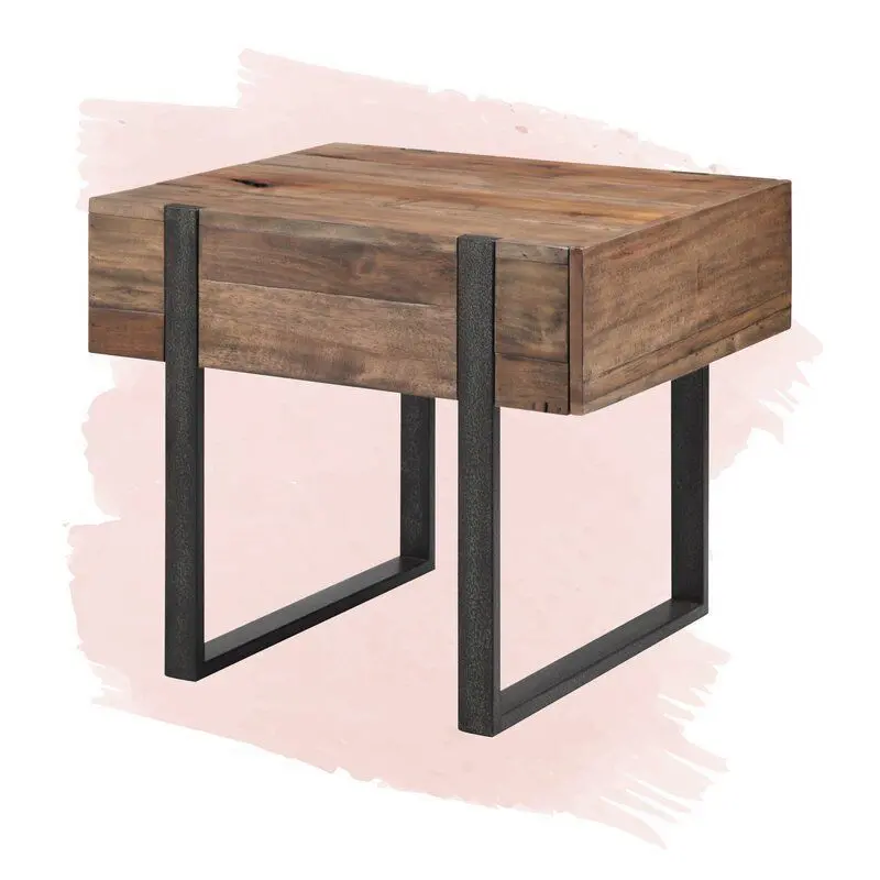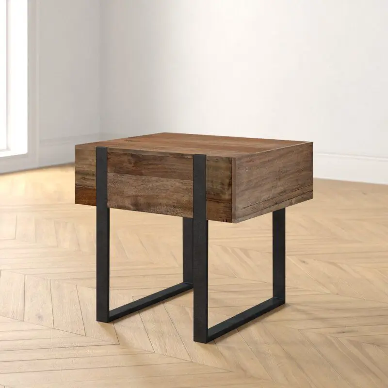 - Delivering both handy surface area and complementary style, end tables are a great option for rounding out any room in you rhome. Take this one, for example: Crafted from a streamlined, solid wood surface with a metal base, it's perfect for a contemporary twist on industrial-inspired style.