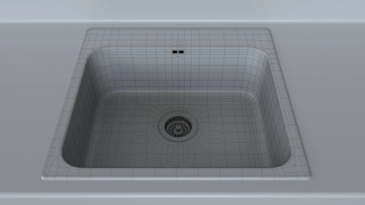 Detailed subdivision model of an ikea LÅNGUDDEN sink with a LILLVIKENsink stopper for architectural visualization.