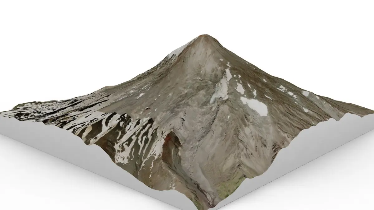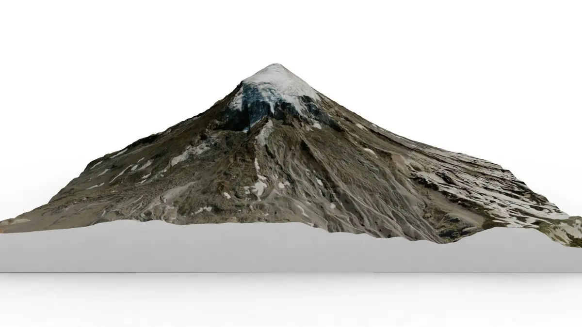 Lanin Volcano is a famous mountain in Argentina . It culminates at 3776 m.The map of Lanin Volcano was made from satellite and GPS data. The texture has a high definition of 3072 x 2570 px