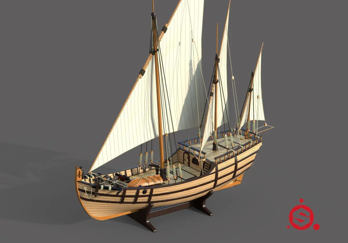 I'm glad to present you this great wooden ship model. This is a miniature version of the legendary ship used by explorer Christopher Columbus in his first voyage to the West Indies in 1492. This model made in 1:65 scale according to Amati's blueprints. It's strongly recommended not to scale up this model but you can do whatever you want to. Fully detailed, textured, unwrapped and low-poly model. Comes with HQ textures(4096x4096).All preview images shown are rendered with Corona Render and Substance painter(with logo). For your convenience it contains separate 3ds max files for different render plugins. Textures for Vray material please pick from Corona folder. No special plugin needed to open scene. All the textures and materials are included and mapped. Some parts (blocks, rings, cannons, etc) are similar, so that their UVs are overlapped. All the way to the textures is removed. The model is placed in the center of the scene.