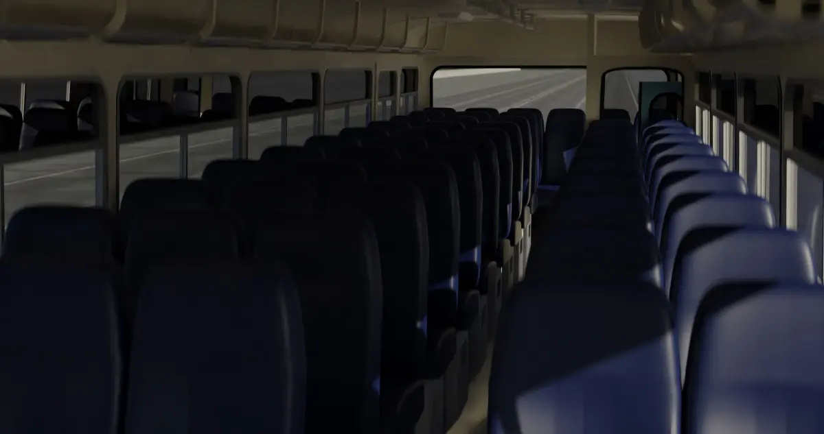 Moving inside the bus, the 3D model offers a detailed representation of the spacious and comfortable interior. The seating arrangement, handrails, and flooring are faithfully recreated, giving viewers an immersive experience. Additionally, the model provides flexibility for customization, allowing users to modify the interior layout, seat colors, and other elements to suit their specific needs.