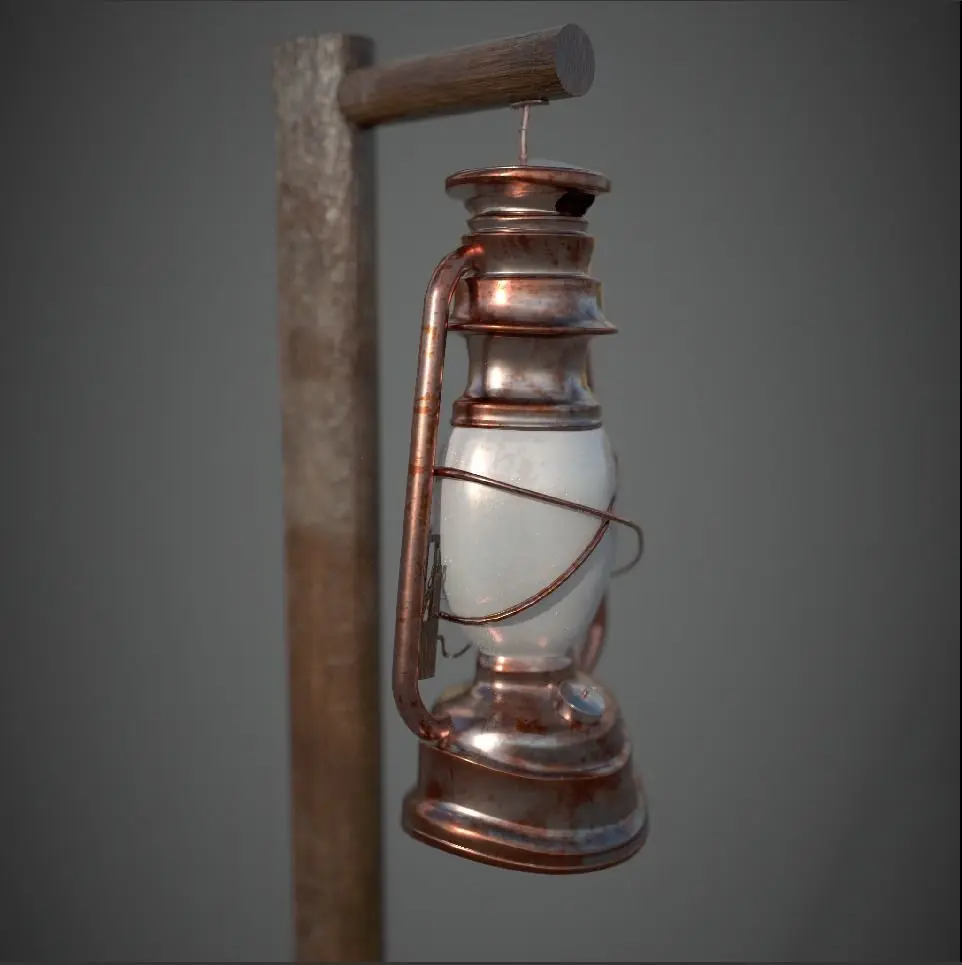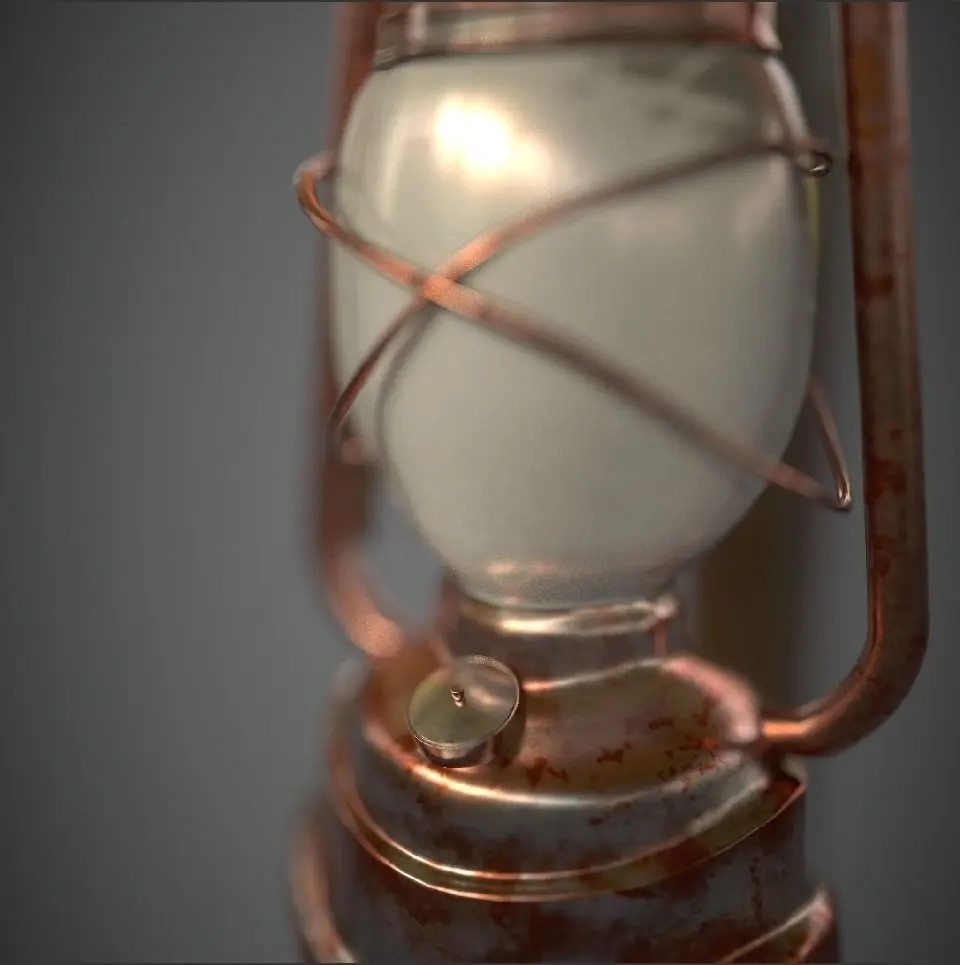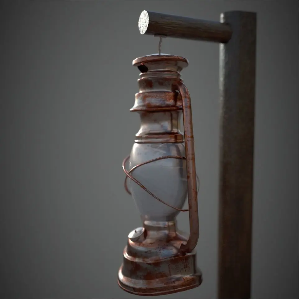 This is a realistic-looking old fashioned rusted lantern modeled using Maya and textured using Substance Painter. The lamp is rusted because it has been exposed to a moist environment. The lamp is made up of copper and transparent glass