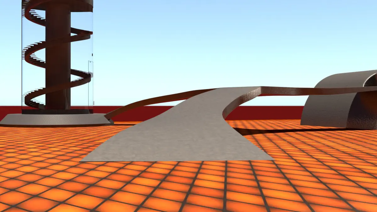Size:Terrain top: 50m x 50mRight building:Length: 16mWidth: 10mHeigth: 5mRamp:Length: 30mWidth: 20mHeigth: 3mTower:Radius: 5mHeigth: 16m