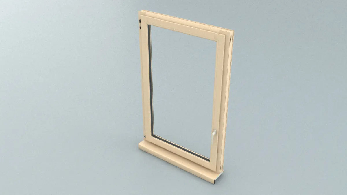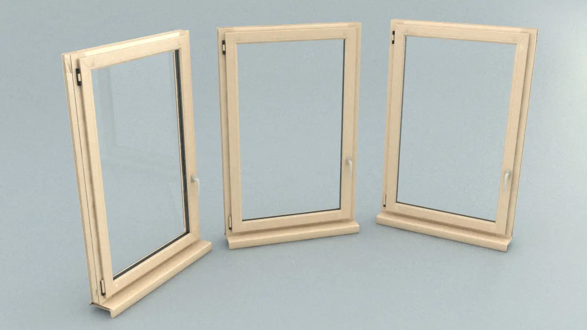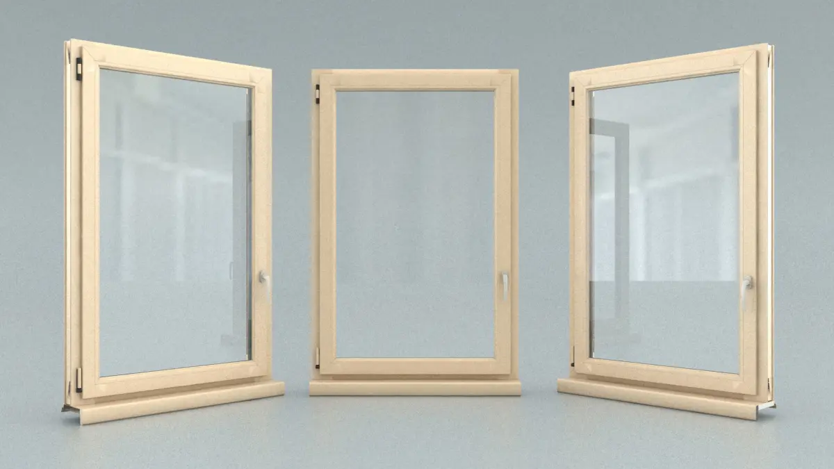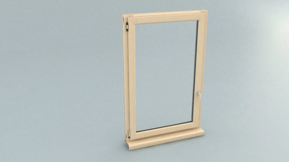 An uPVC (unplasticised polyvinyl chloride, a strong and low-maintenance but lightweight plastic building material) window with handle.