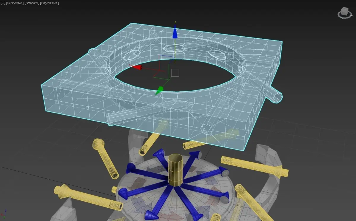 One center rotation platform, an axle I power and turn with laser light, generating rotation, performing work. 4 lasers all placed under their own angle of insider, shine straight into the drive.