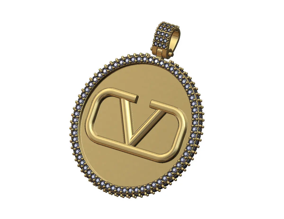 Large 40mm iced V logo Valentino pendant with bail
