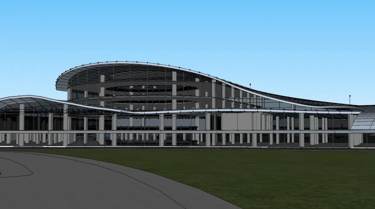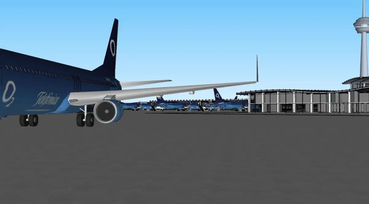 Large Airport 3D Model Architecture.Contains 3 main airport buildings, Airplane 3D models, airport runway, parkings, and observation tower.