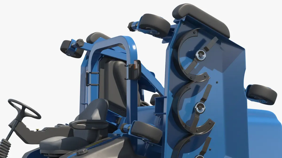 Large Area Lawn Mower Folded Configuration Blue is a 3d model of a versatile and robust lawn mower, designed for efficient and precise grass cutting across various terrains.