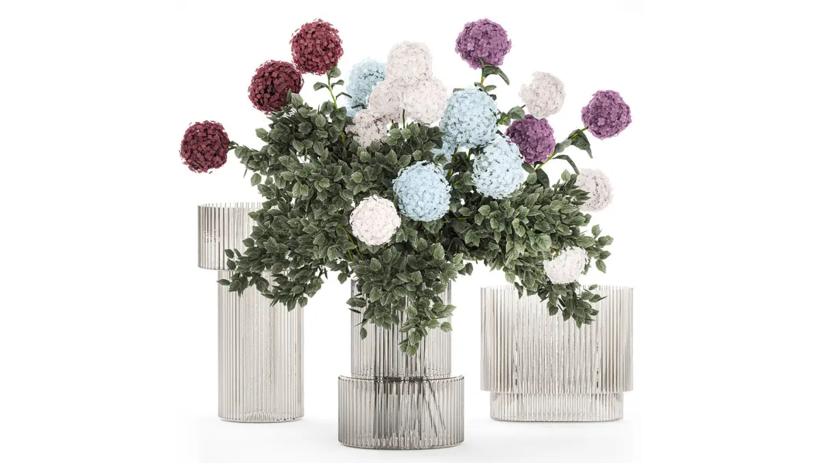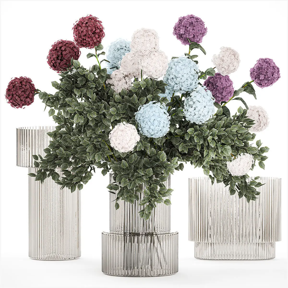 Beautiful lush bouquet of flowers and greenery in a modern glass vase, hydrangea, blue, purple, white. Set 354.Decorative Bouquet of white flowers in a glass vase for decoration and interior.Bouquet of branches and flowersbouquet of green leaves and branchesvase with branches, branches in a vaseCorylus, filbert, Hazel - Hazel, hazelhydrangea - white hydrangeaSpring bouquetvases - 2.hm, H&M HOME